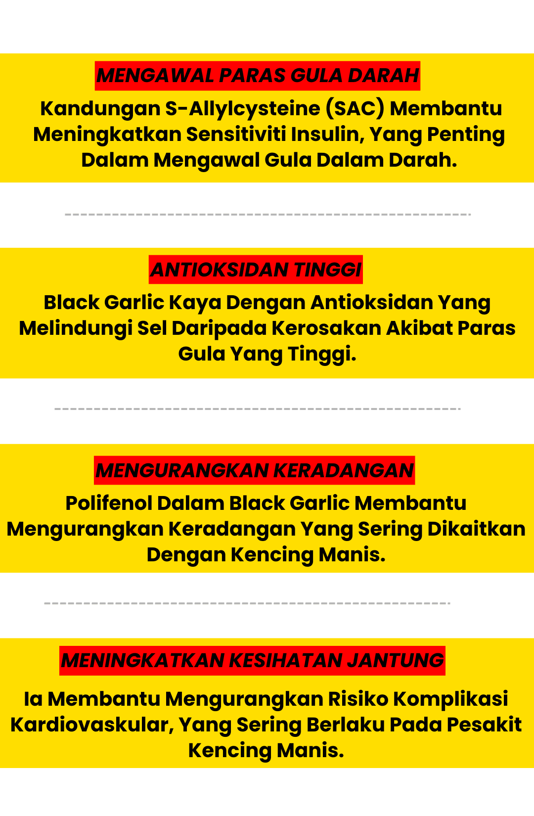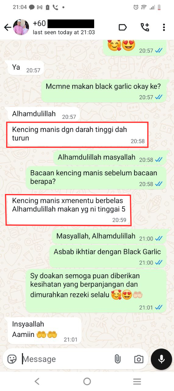“..Bila menghidap kencing manis, bahaya jika mengambil suplemen sebarangan. Badan selalu rasa letih dan lesu. Alhamdulillah ada Black Garlic Purelife ni, selamat diambil dengan kesan yang pantas untuk kesihatan!”